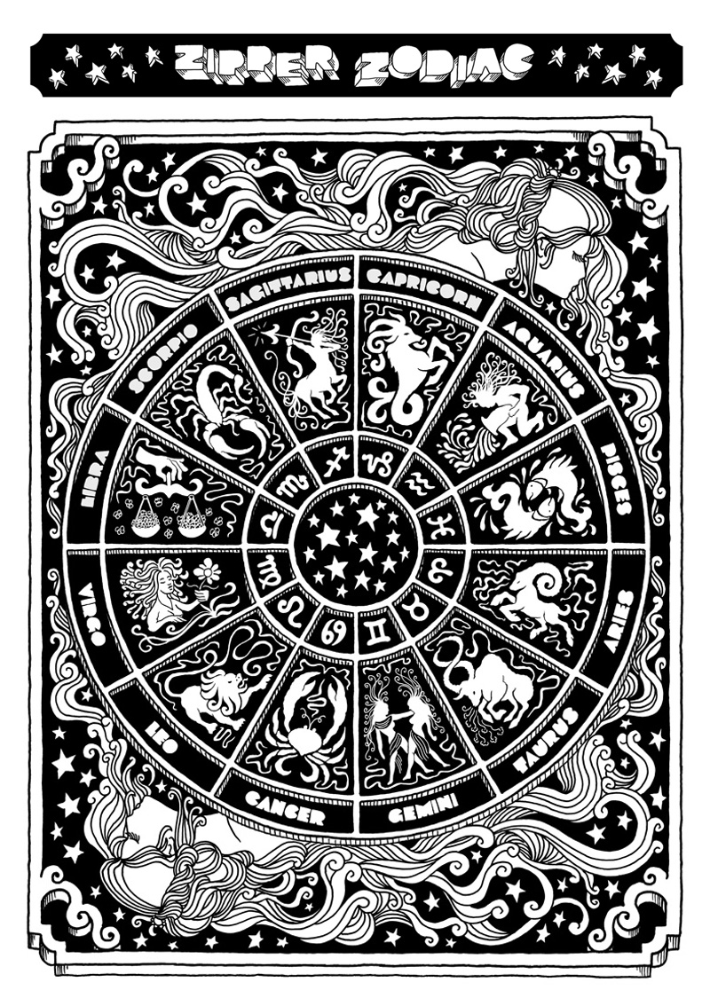 As part of their Orange Tab campaign this summer, LVC released Zipper Magazine - a sort of 1970's Rolling Stone spoof. As always with LVC, attention to detail was at the forefront and the mag is full of vintage flavour and 'authentic' content. I was asked to illustrate the horoscope section. You can read the mag online here.