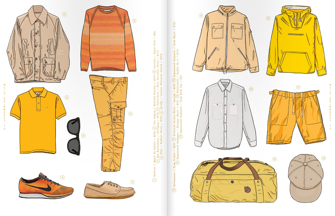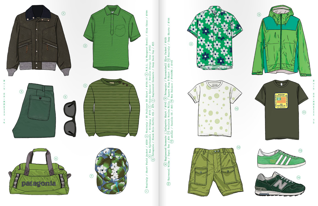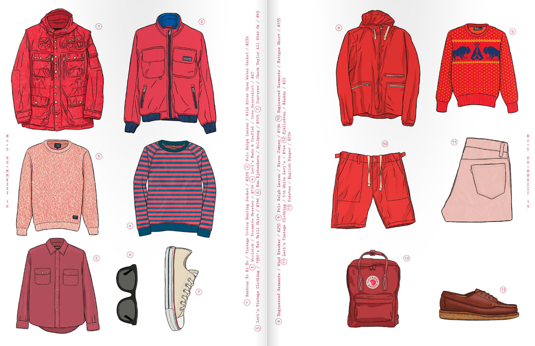 It was great to collaborate with Oi Polloi again on issue 5 of Pica~Post. We decided to switch things around this time and illustrate colour themed garment spreads rather than individual modelled outfits. Meant a bit more work for me, but good fun as ever. You can read it here.