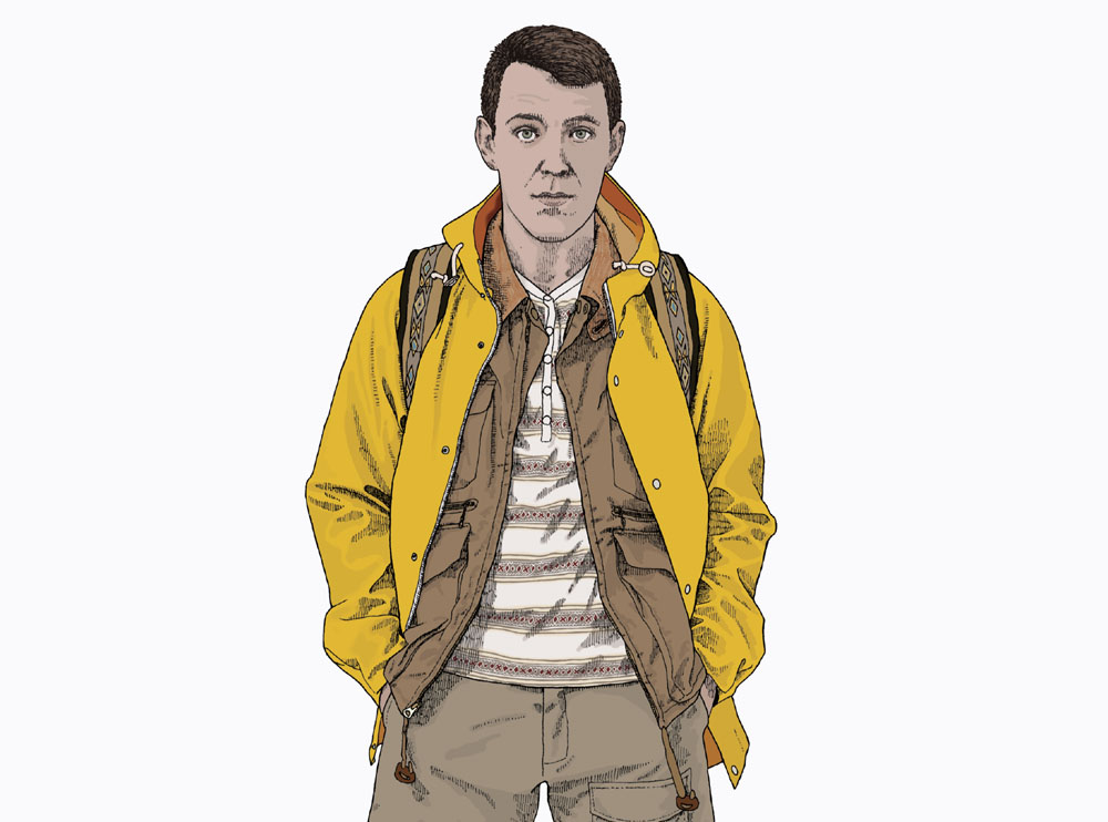 Oi Polloi have just published the first issue of Pica~Post, a new twice-yearly publication showcasing the seasons best clothing and footwear from their own perspective. I've illustrated four outfits for it, each with a tale to tell as Oi Polloi explains: